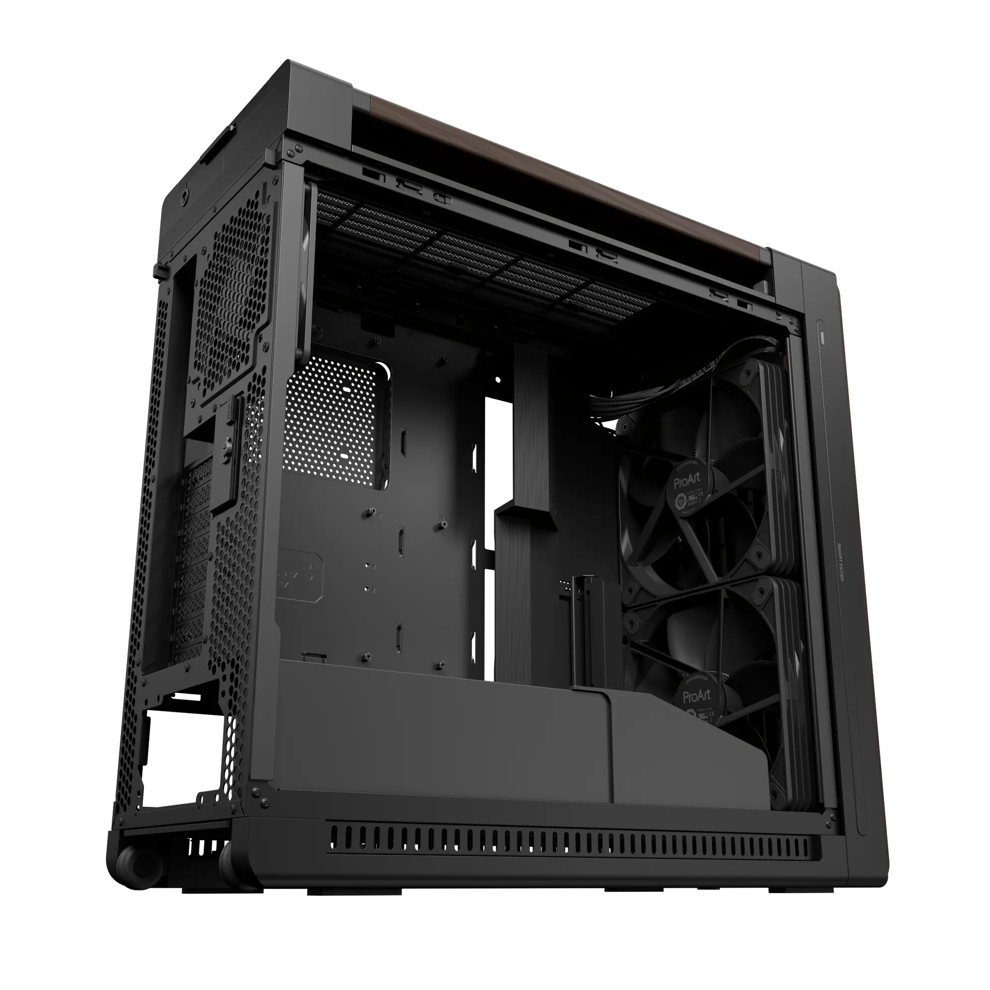 Das ProArt PA602 Wood Edition-Gehäuse bietet dem Benutzer das Beste aus beiden Welten – umfassende Kühlung, wenn sie benötigt wird, und einen unauffälligen Betrieb, wenn Sie mit leichteren Lasten arbeiten.