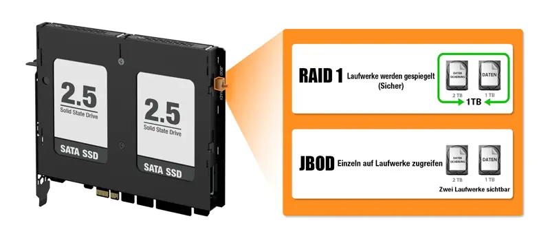 RAID 1- und JBOD-Unterstützung