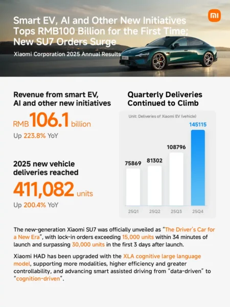Xiaomi meldet für 2025 Umsatz von 457,3 Mrd. RMB – Sparte für Elektrofahrzeuge erstmals operativ profitabel