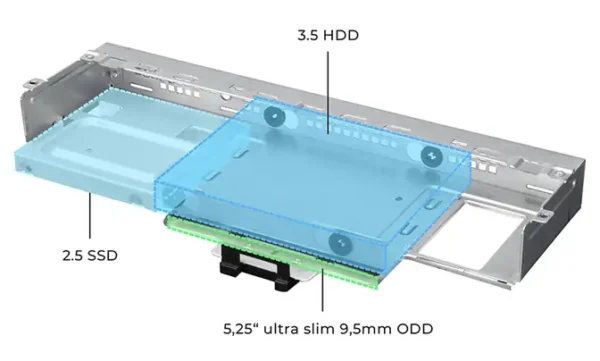 Flexible Speicheroptionen: 3,5″ HDD, 2,5″ SSD und 5,25″ Ultra-Slim 9,5 mm ODD