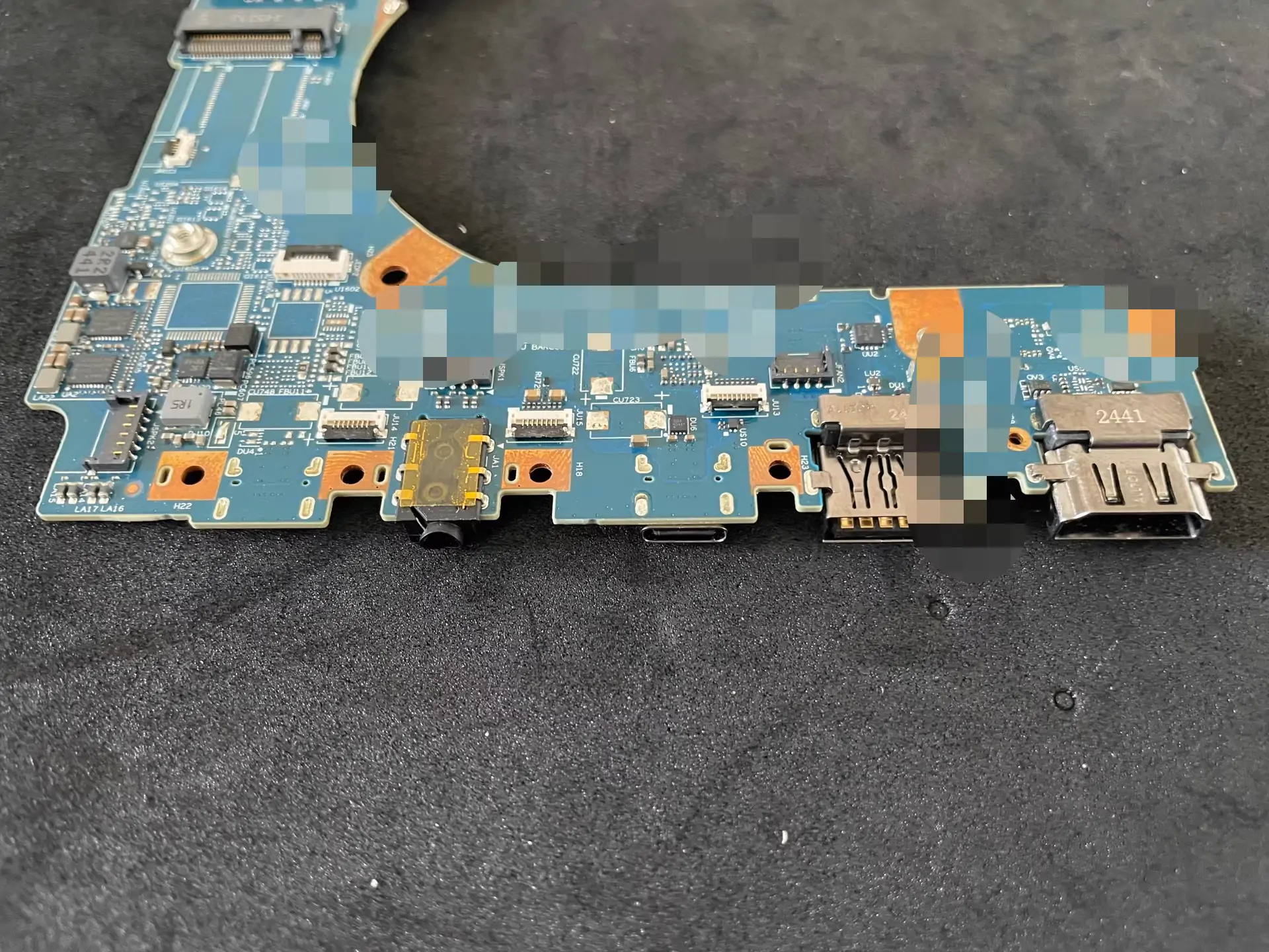 Bereits auf den ersten Blick fällt die kompakte Bauweise des Boards auf. Diese deutet klar auf den Einsatz in dünnen und leichten Notebooks oder Tablet-ähnlichen Geräten hin. Trotz der geringen Größe integriert das Layout eine solide Auswahl an Schnittstellen, darunter USB Typ-C, USB Typ-A, integriertes WLAN sowie einen 3,5-mm-Audioanschluss. Für Massenspeicher stehen zwei M.2-Slots zur Verfügung, die auf kürzere 40-mm-SSDs ausgelegt sind – ein typisches Designmerkmal für platzoptimierte mobile Systeme.