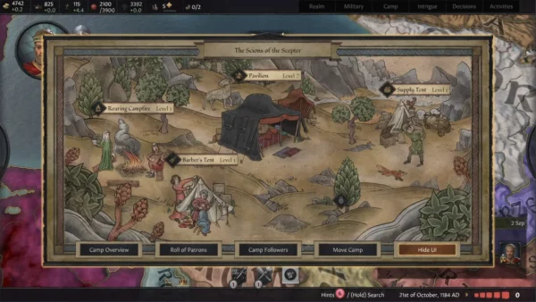 - Der Familienbesitz: Leite und verwalte ein mächtiges Familiengut, den Sitz der Macht deines Hauses, auch wenn du kein anderes Land besitzt. Baue neue Gebäude und Upgrades, um deine Macht und deinen Einfluss in einem Verwaltungsimperium zu vergrößern.