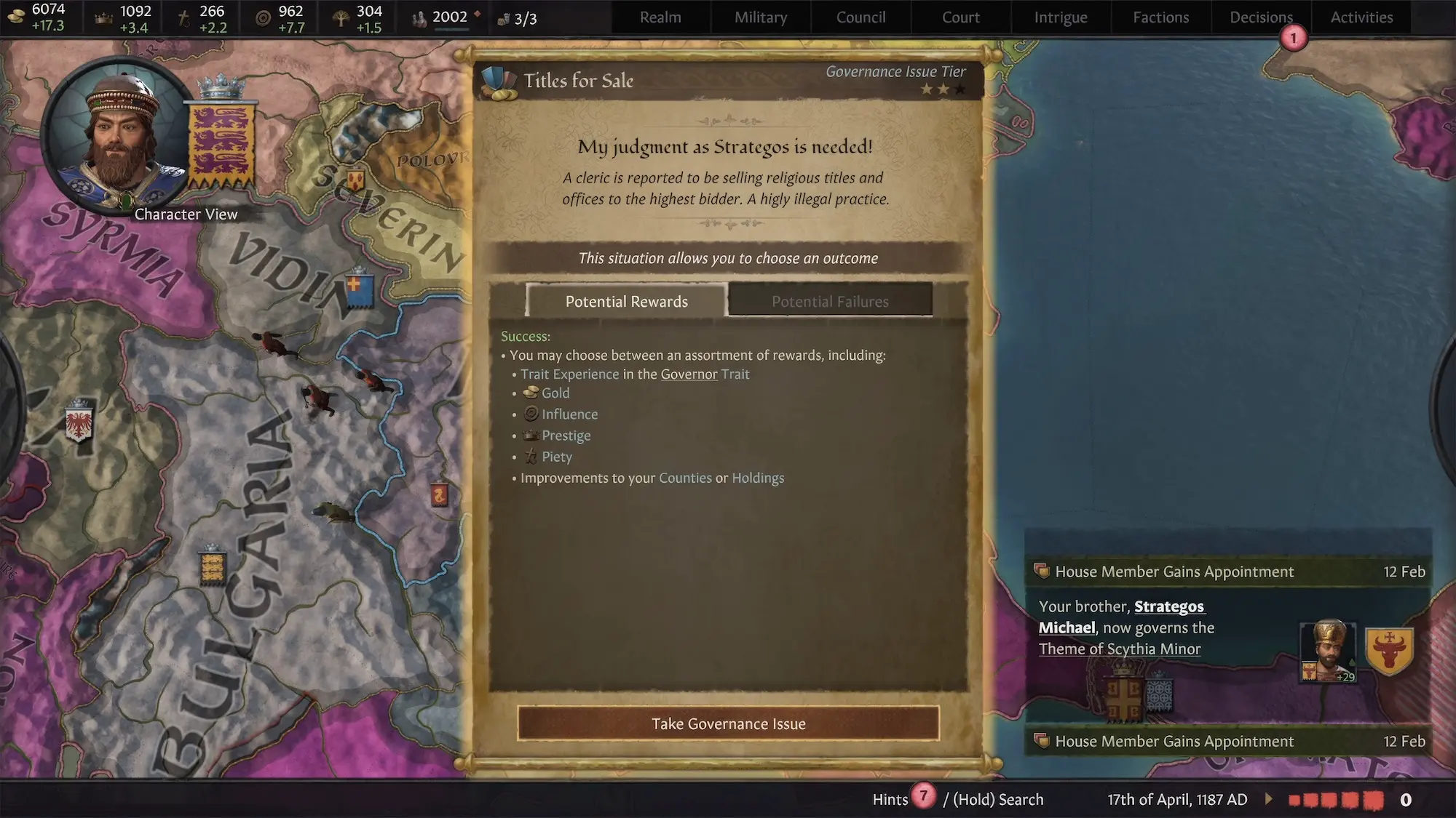- Inspektor: Charaktere mit Landbesitz können ihr Reich erforschen und verbessern, landlose Charaktere können sich je nach Umgebung spezialisieren.