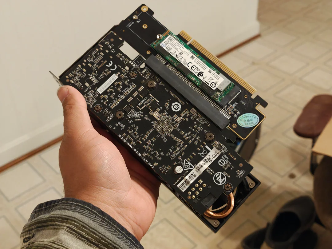 Mit einer speziellen PCIe-Adapterkarte hat ein Reddit-Nutzer kürzlich eine kompakte PCIe-Erweiterungslösung demonstriert, die einen eher unkonventionellen Ansatz verfolgt: die Kombination von Grafikleistung und Massenspeicher über einen einzigen PCIe-Steckplatz. Insbesondere für Small-Form-Factor-Systeme (SFF), bei denen Erweiterungsslots knapp sind, könnte dieses Konzept neue Möglichkeiten eröffnen.