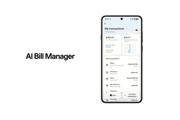Neu hinzu kommt AI Bill Manager. Die Funktion ist darauf ausgelegt, Ausgaben im Alltag übersichtlicher zu erfassen. Nach einer Zahlung auf dem Smartphone kann AI Mind Space über die Snap-Taste oder die entsprechende Wischgeste aktiviert werden, um relevante Informationen aus digitalen Rechnungen und Zahlungsdaten automatisch zu extrahieren und zu speichern.
