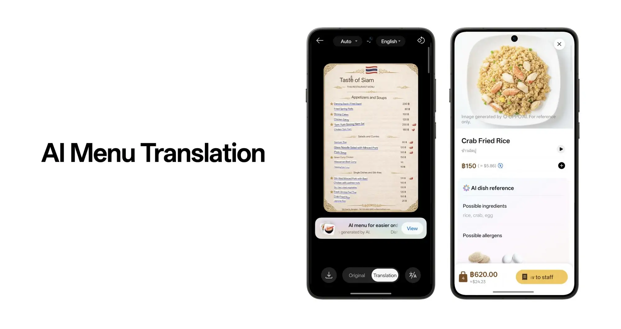 Dazu zählt AI Menu Translation[2]. Die Funktion unterstützt insbesondere auf Reisen beim Verstehen von Speisekarten in einer fremden Sprache. Neben einer Übersetzung werden zusätzliche Beschreibungen zu Gerichten bereitgestellt, um Inhalte verständlicher einzuordnen. Darüber hinaus kann AI Menu Translation Zutaten erkennen, visuelle Referenzen zu Speisen erzeugen und Preise automatisch in die bevorzugte Währung umrechnen.