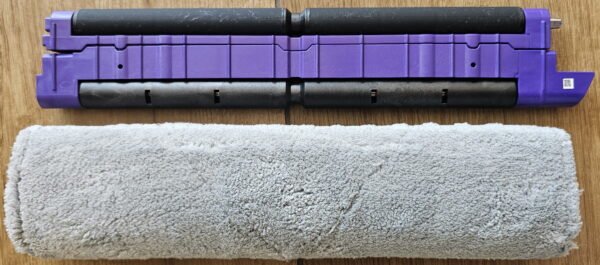Auf der Unterseite befindet sich die Bodenwalze, welche aufgenommene Haare zu einer Seite befördert und dort in den Roboter eingesaugt werden. Das System gibt es bei Narwal jetzt schon relativ lange und funktioniert sehr zuverlässig. Der Flow 1 und Flow 2 verfügen über ein Wischtuch, welches auf einen Halter aufgespannt und vom Roboter kontinuierlich gedreht, befeuchtet und abgesaugt wird. Neu ist das Heißwischen bei 60 Grad, einen wirklichen Unterschied zum Flow 1 konnte ich aber nicht feststellen. Beide Generationen sind sehr gut und können Rand nah wischen, in dem die Wischwalze zur Seite herausgeschoben wird.