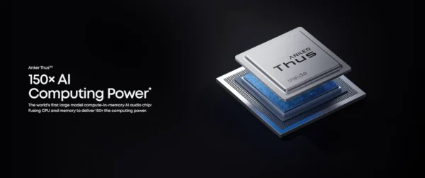 *Alle Leistungsangaben basieren auf internen Labortests von ANKER. Der Wert von 150-facher KI-Rechenleistung bezieht sich speziell auf die Aufgabe der Umgebungsgeräuschunterdrückung und spiegelt den architektonischen Wechsel von regelbasierter zu neuronaler KI-Verarbeitung wider. Es handelt sich nicht um eine allgemeine Leistungsangabe und spiegelt keine Verbesserung des Prozessknotens wider. Die hier erwähnte Arbeitslast zur Umgebungsgeräuschunterdrückung läuft als neuronales Netzwerkmodell auf dem ersten Thus™-Chip.