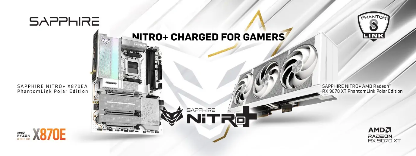 Die SAPPHIRE NITRO+ AMD Radeon RX 9070 XT PhantomLink Polar Edition Grafikkarte und das SAPPHIRE NITRO+ X870EA PhantomLink Polar Edition Motherboard wurden mit dem Ziel entwickelt, zusammen ein SAPPHIRE NITRO+ Ökosystem der Premiumklasse zu bilden.