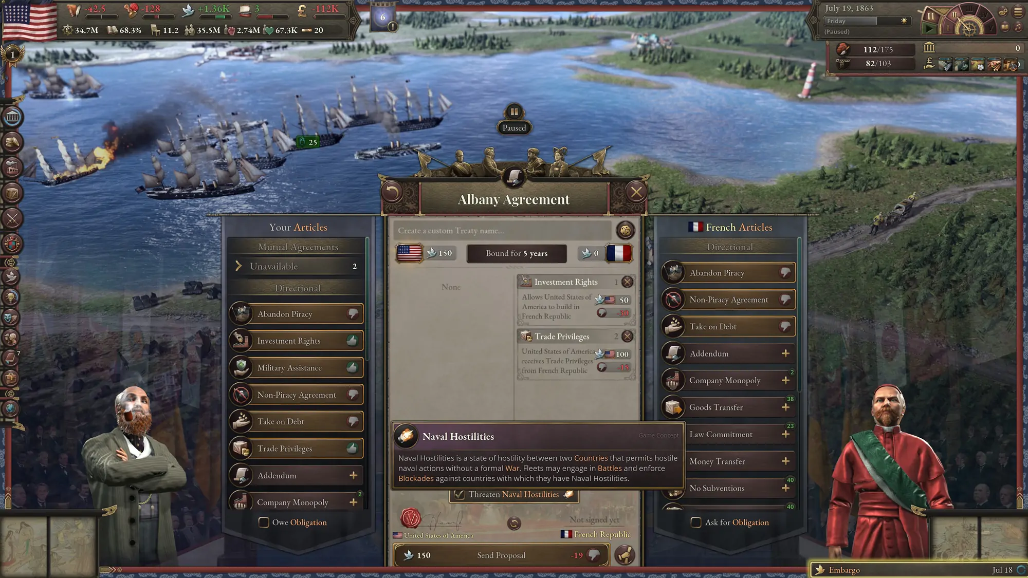 - Optionen für Kanonenbootdiplomatie: Spielerinnen und Spieler nutzen ihre Flotte, um andere Länder in neuen diplomatischen Aktionen zu beeinflussen.