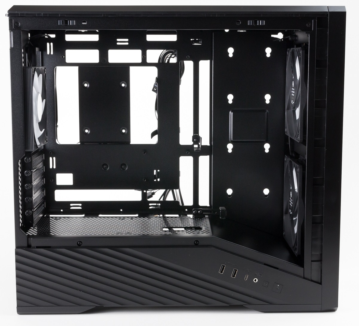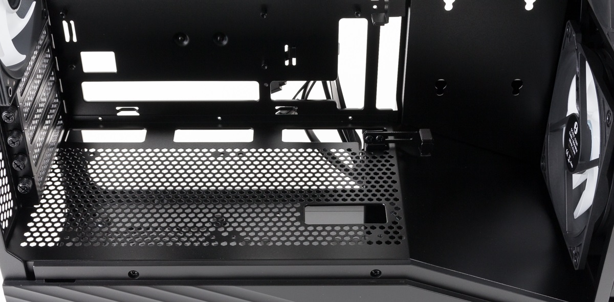 Im Hauptinnenraum können Mainboard, Grafikkarte und Lüfter oder auch eine Wasserkühlung installiert werden.