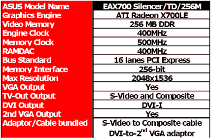 ASUS Extreme AX700 Silencer is equipped with ASUS innovative ReverseCool® technology, offering GPU-on-the–back technology with fanless design to deliver high-performance cooling at 0dB. With a powerful combination of the industry’s fastest PCI Express architecture: ATI® Radeon™ X700LE GPU and ASUS’s unique features, ASUS Extreme AX700 Silencer incorporates various exclusive features, such as ASU Splendid, ASUS GameFace Live, ASUS GameReplay, and ASUS GameFace messenger. ASUS Extreme AX700 Silencer delivers exceptional quality and performance to the most demanding user for 3D games, streaming media, digital video, and office applications.